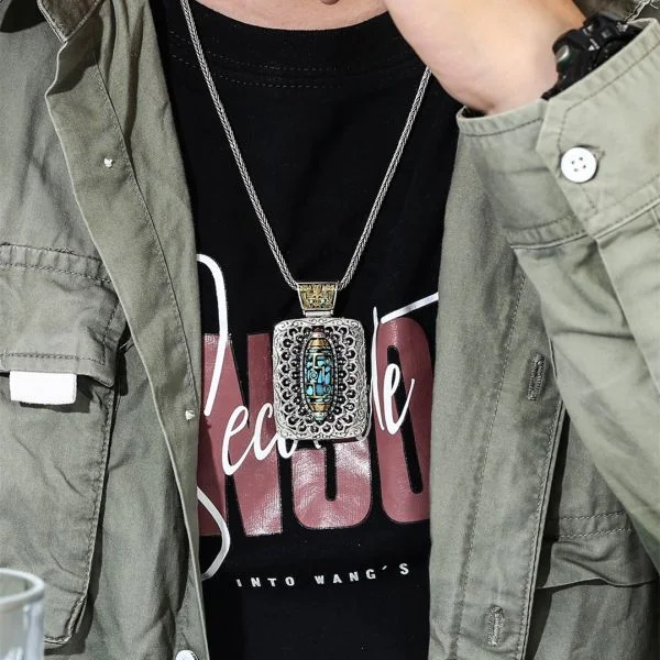 Ως δώρο για τα αγαπημένα σας πρόσωπα, αυτό το περιορισμένης παραγωγής ασημένιο κολιέ Taotie με τιρκουάζ περιστρεφόμενες χάντρες Dzi με εννέα μάτια και χάντρες, θα είναι τέλειο!
